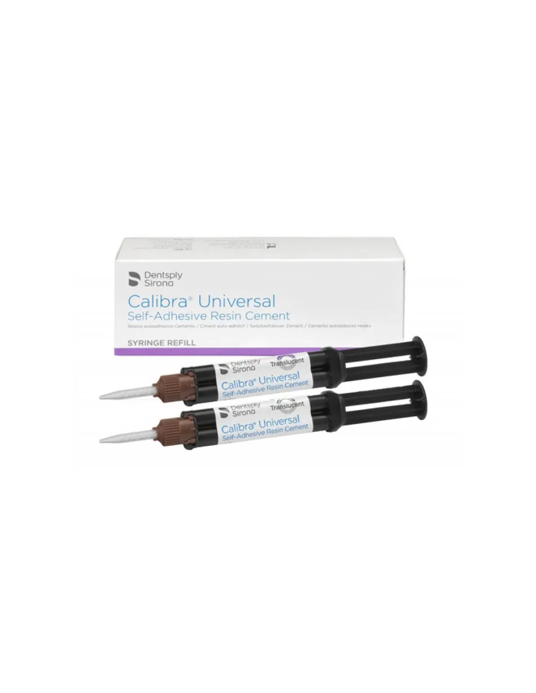 El envase de Calibra Universal Automix Reposición de Dentsply De Trey contiene: 2 jeringas de 4,5gr + 20 puntas.