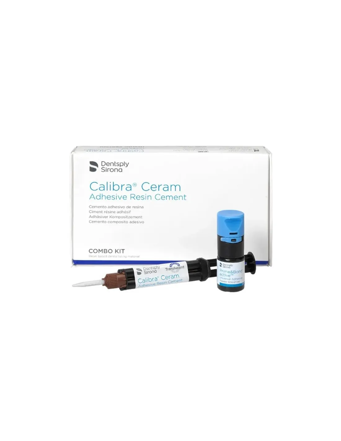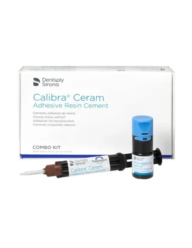Calibra Ceram de Dentsply De Trey es un cemento estético de resina de sistema versátil de polimerizado: curado, auto-curado y curado dual, compatible con gran número de material restaurador indirecto, aunque existen instrucciones específicas para su uso con restauraciones translúcidas.