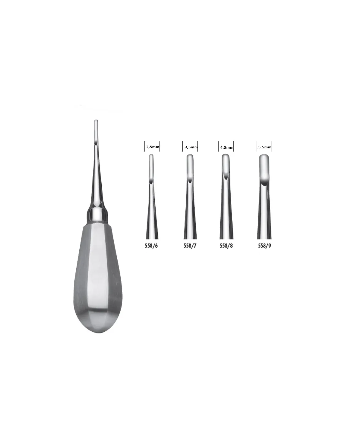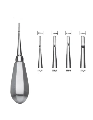 El elevador de raíces está indicado especialmente para la remoción y posterior extracción de dientes, fragmentos y raíces.