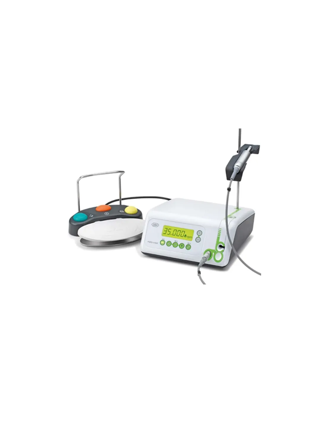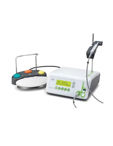 Se programa fácilmente a través de los controles de la unidad o del pedal de control. El micromotor con cable es termodesinfectable y esterilizable.