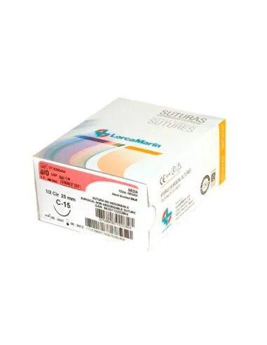 La caja de sutura de seda C-15 5/0 de Lorca Marin contiene 12 unidades.