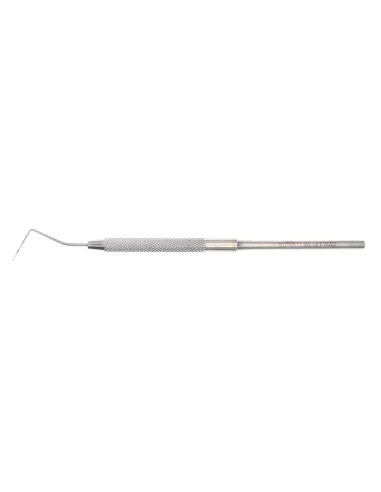 Esta sonda es muy útil para introducirnos en la bolsa periodontal de una forma segura y conociendo con precisión la profundidad de la misma gracias a sus marcas de medición.