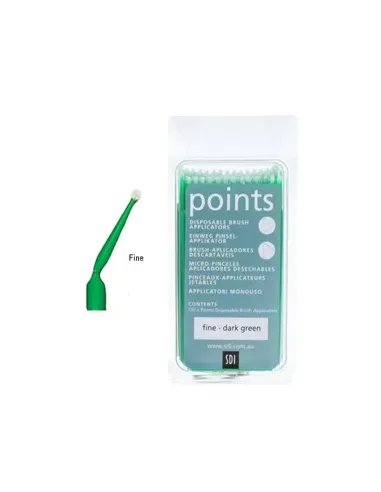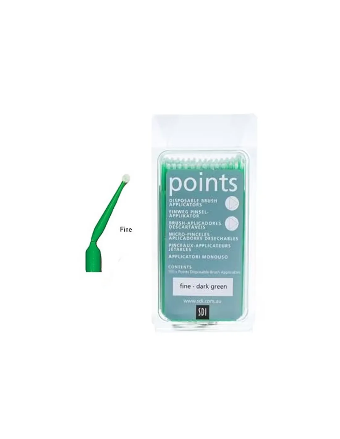 El envase de micropinceles de SDI contienen 400 unidades en tamaño fino a elegir entre color verde claro o verde oscuro.