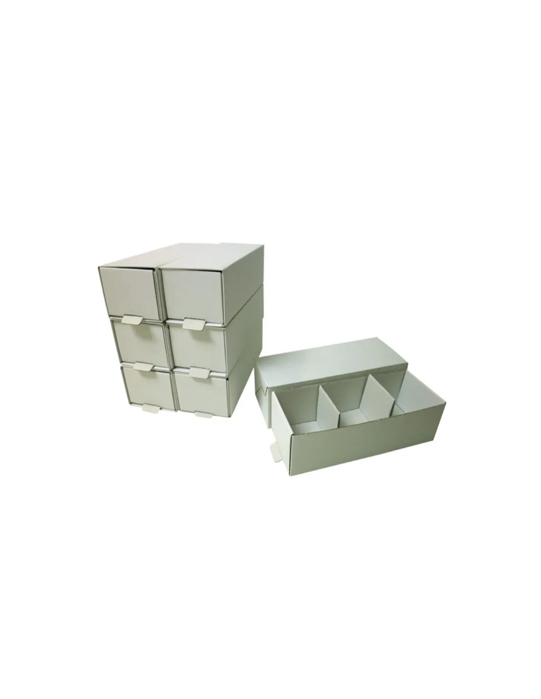 Poseen 3 compartimentos, en formato cajón para extraer el modelo deseado sin romper el orden de los demás modelos guardados.