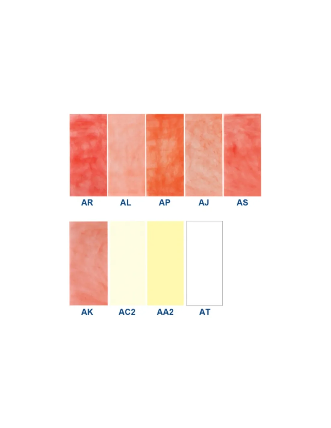 - 6 tonos de rosa veteado: AR regular, AL claro, AP rosa, AJ rosa claro, AS estándar y AK clásico.