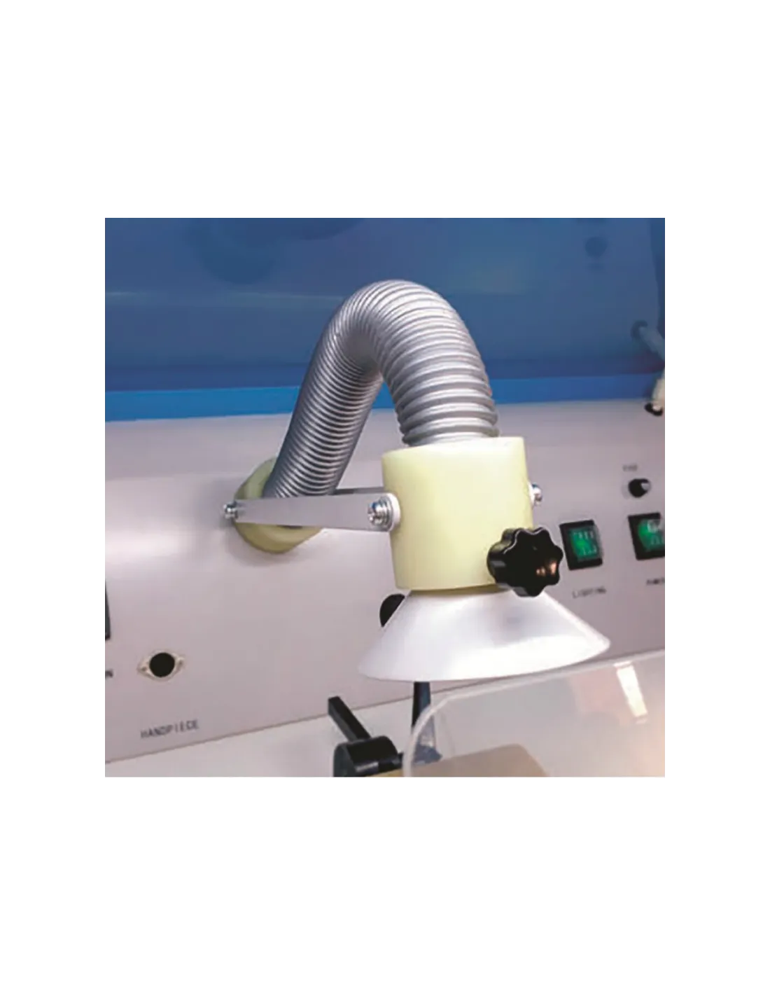 La cabina posee una campana y astillera con aspiración que ofrece la posibilidad de trabajar de forma independiente y/o complementaria.