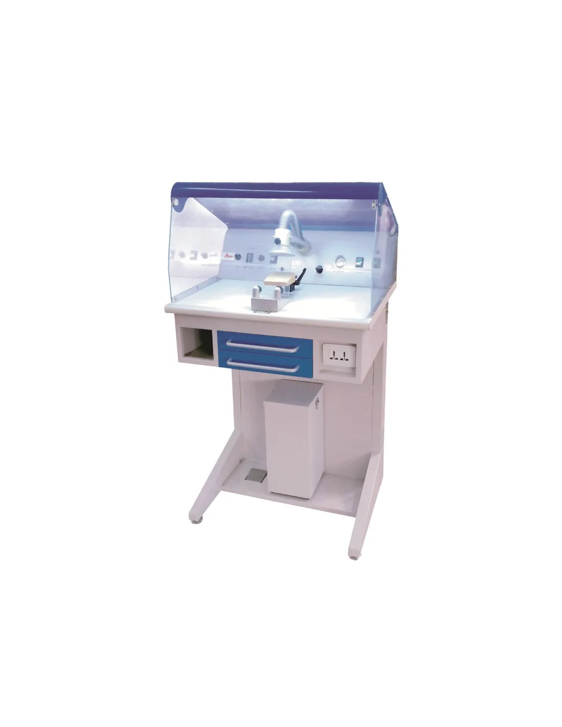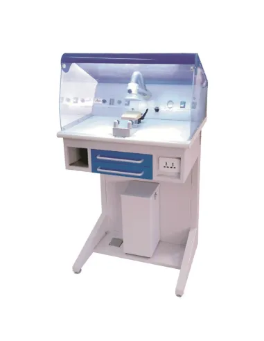 Este módulo compacto de Tecnnoflux construido totalmente en acero esmaltado, cubre todo los aspectos necesarios de repasado y pulido en un laboratorio dental.