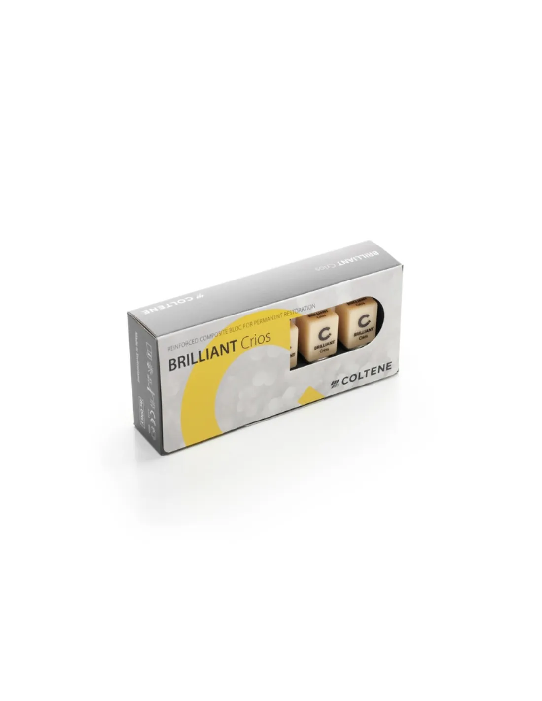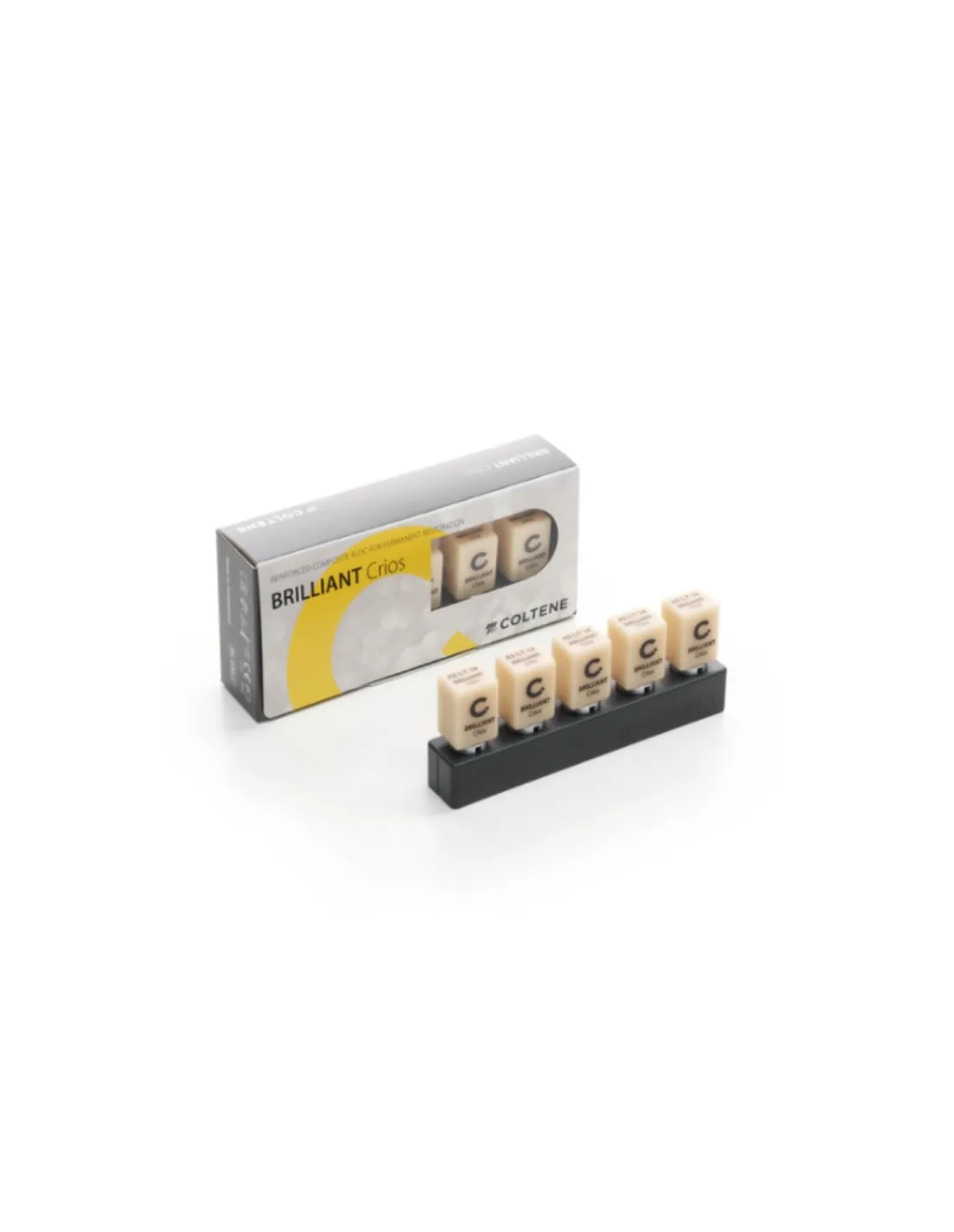 Brilliant Crios de Coltenè es un bloque de composite reforzado diseñado para restauraciones definitivas indirectas mediante el proceso de tallado CAD/CAM.