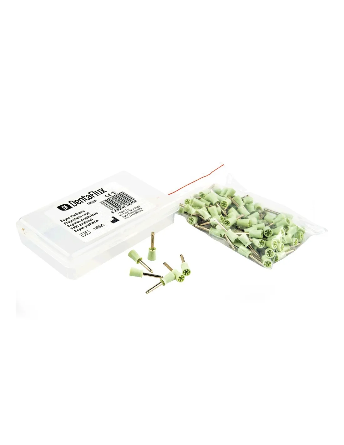 El envase de copas de profilaxis de Dentaflux contiene 100 uds.