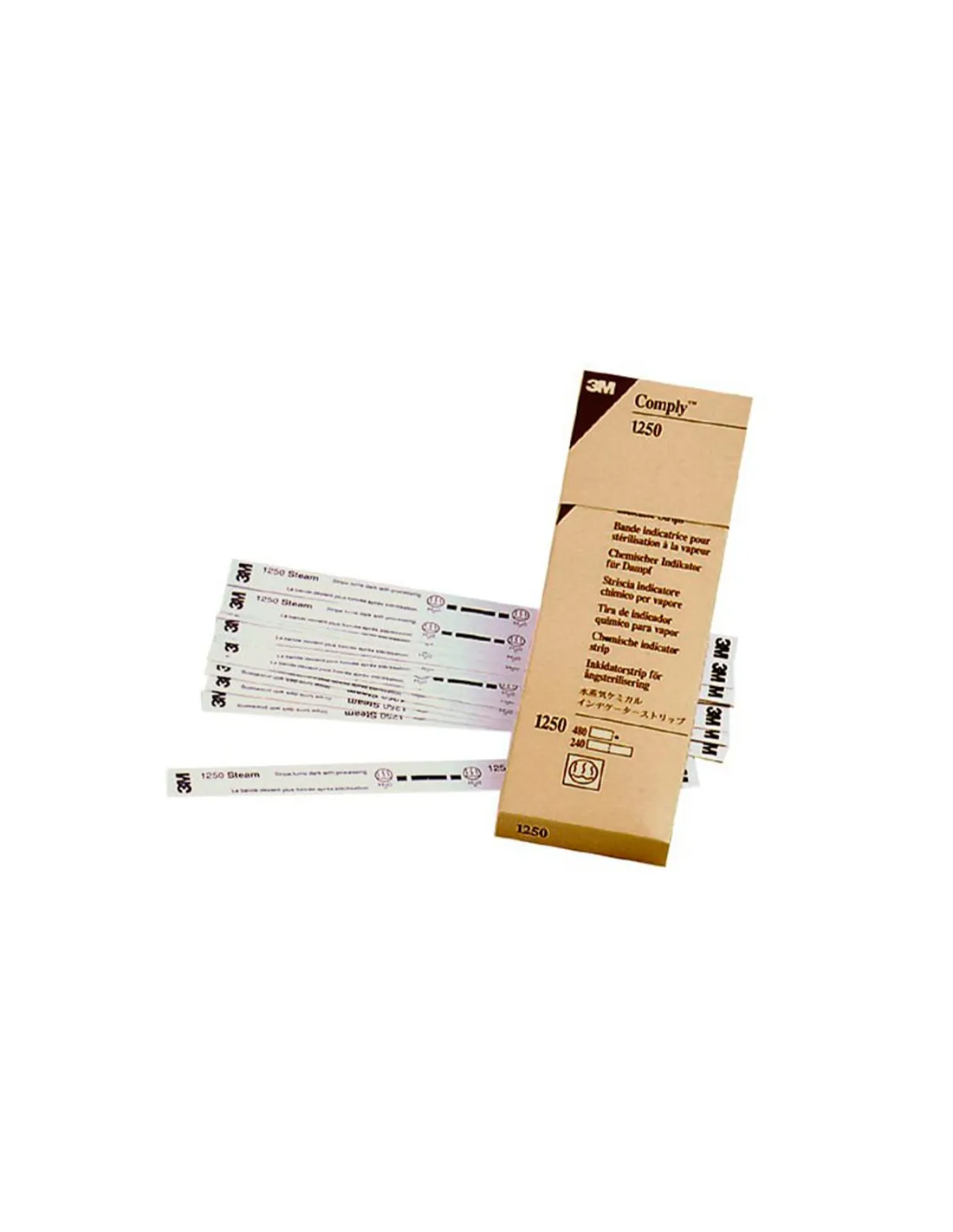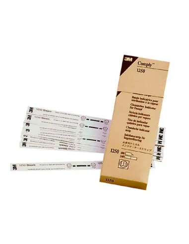 Comply Tiras de 3M es un indicador químico multiparamétrico marcado con una larga tira de tinta de fácil lectura e identificación, para una amplia área de monitoreo en el paquete.