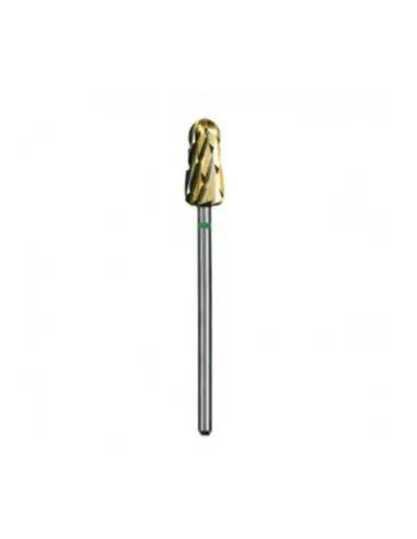 La fresa euro carburo Goldies HP de Dedeco posee un corte cruzado grueso (SG) con forma de cono.