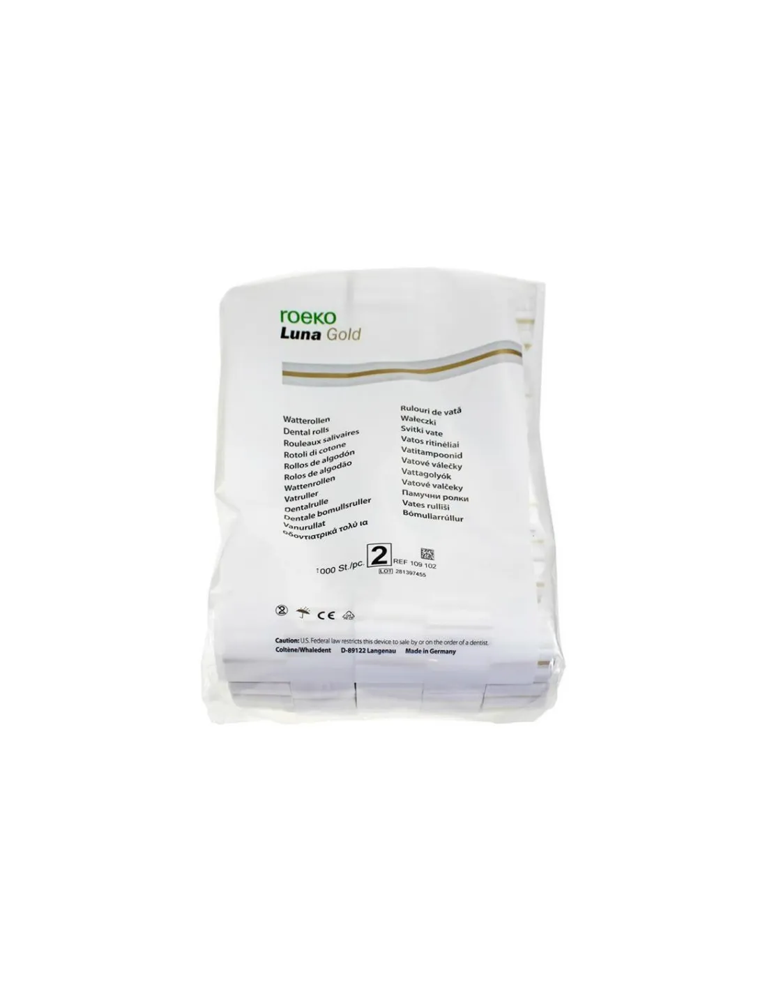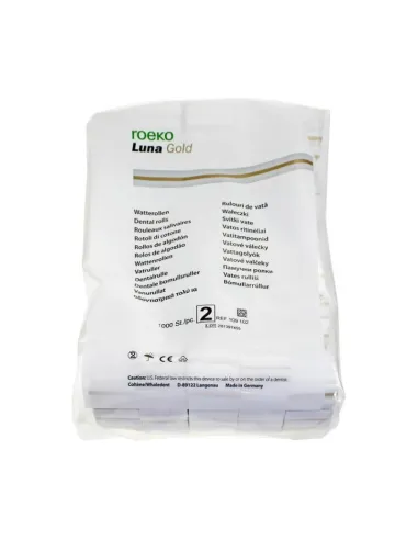 Luna Gold de Roeko es un rollo dental de algodón que va envuelto en una suave malla de un material mucófilo que evita que entren en contacto las fibras con los tejidos blandos. Ofrece una absorción duradera y excepcional estabilidad dimensional.