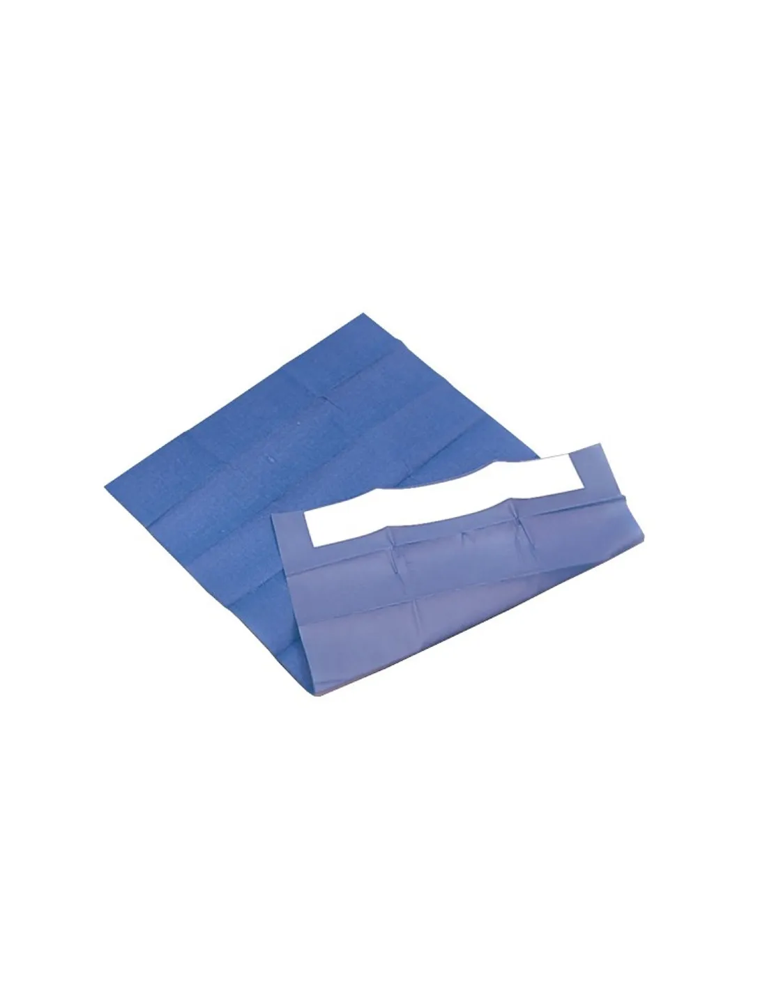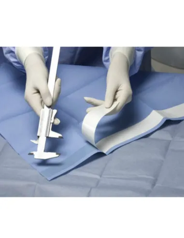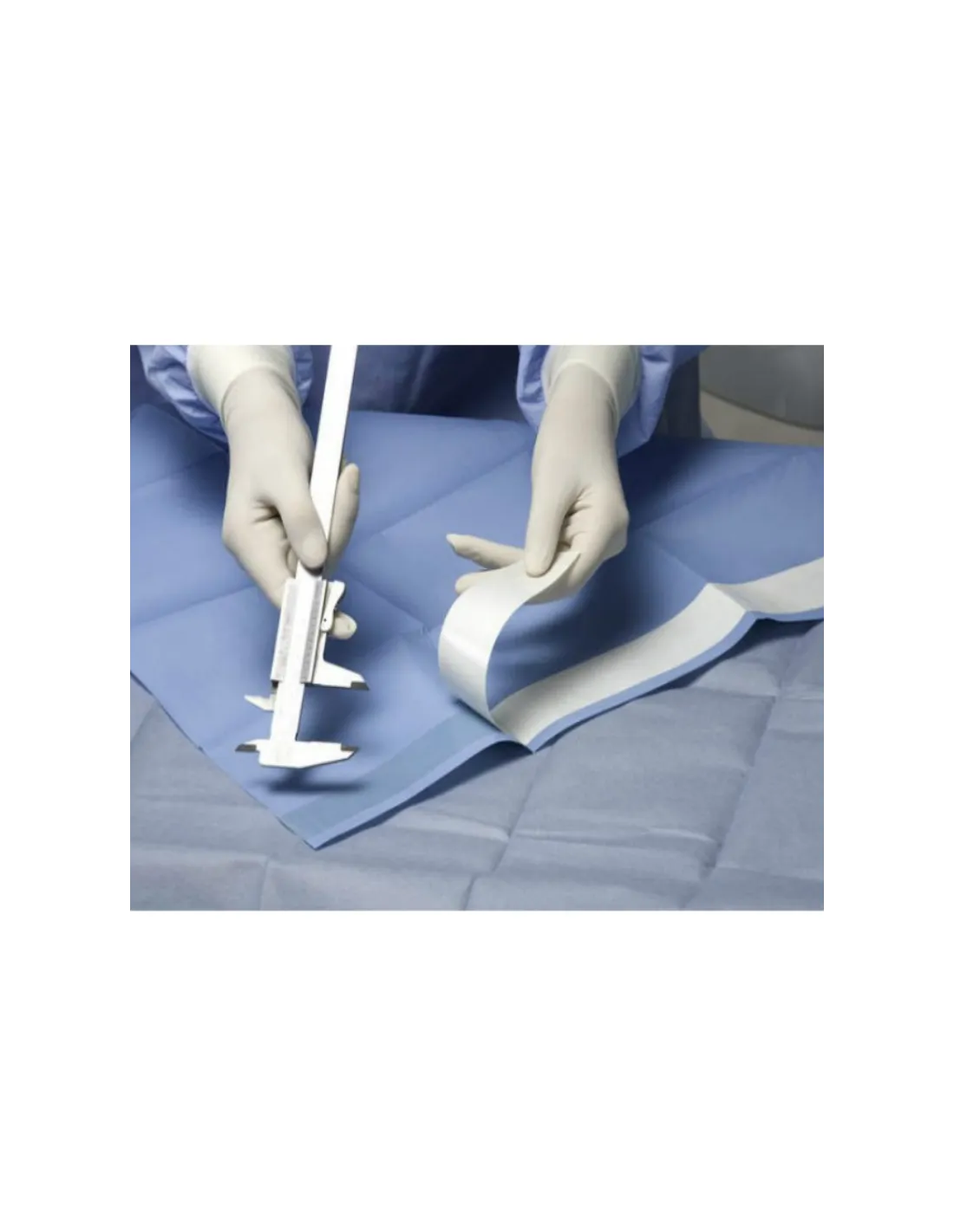 El paño quirúrgico, color azul, tiene unas medidas de 75x90 cm.