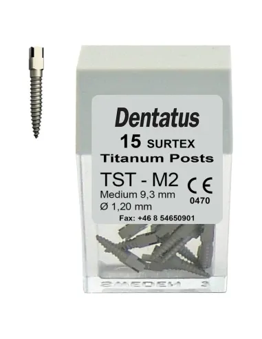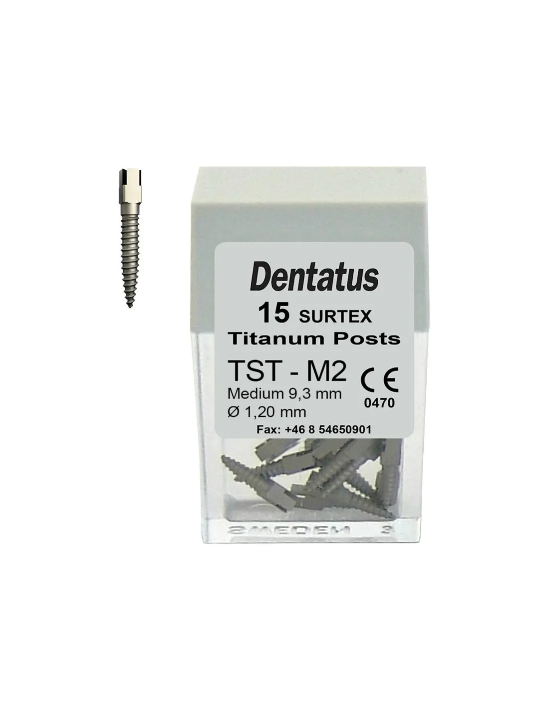 Dentatus Classic Surtex se presenta en una gran variedad de tamaños, desde 7,8 hasta 17mm de longitud y desde 1,05 hasta 1,8 mm de diámetro, para ajustarse a dientes de cualquier tamaño. Varios pernos pueden ser combinados para dientes con raíces múltiples.