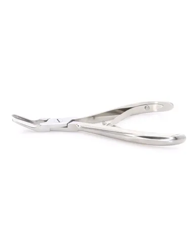 Pinza Gubia Cortante Curva, de puntas anchas con resorte entre sus brazos.