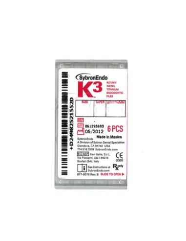 Las limas K3 de Kerr son un sistema de limas endodónticas asimétricas de triple-estria. Indicadas para eliminar los residuos de una manera rápida, cómoda, eficaz y segura.