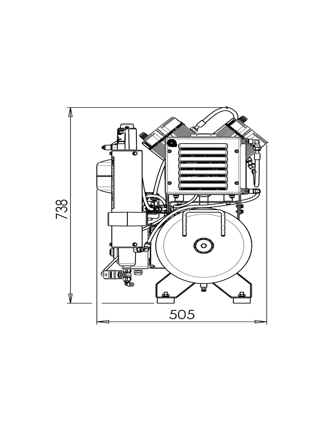 Equipado con secador de aire y con una serie de filtros, incluido uno esterilizador, que garantiza un aire seco de alta calidad y pureza.