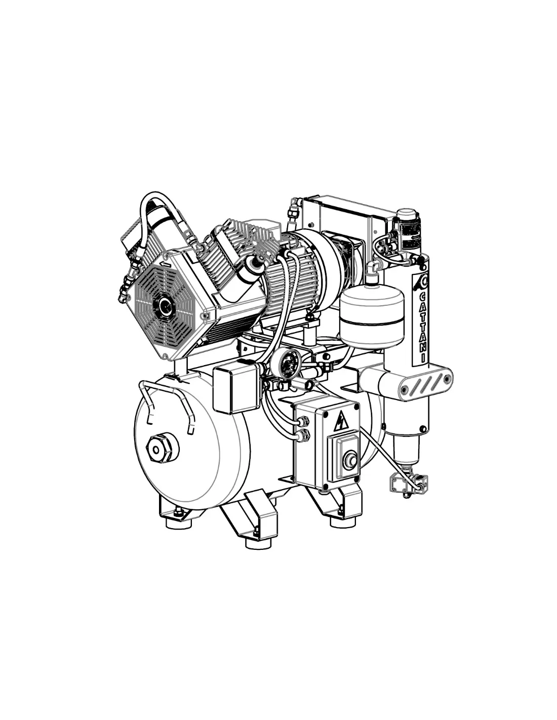 El modelo AC 200 de Cattani es un compresor de aire seco de 2 cilindros, libre de aceite.