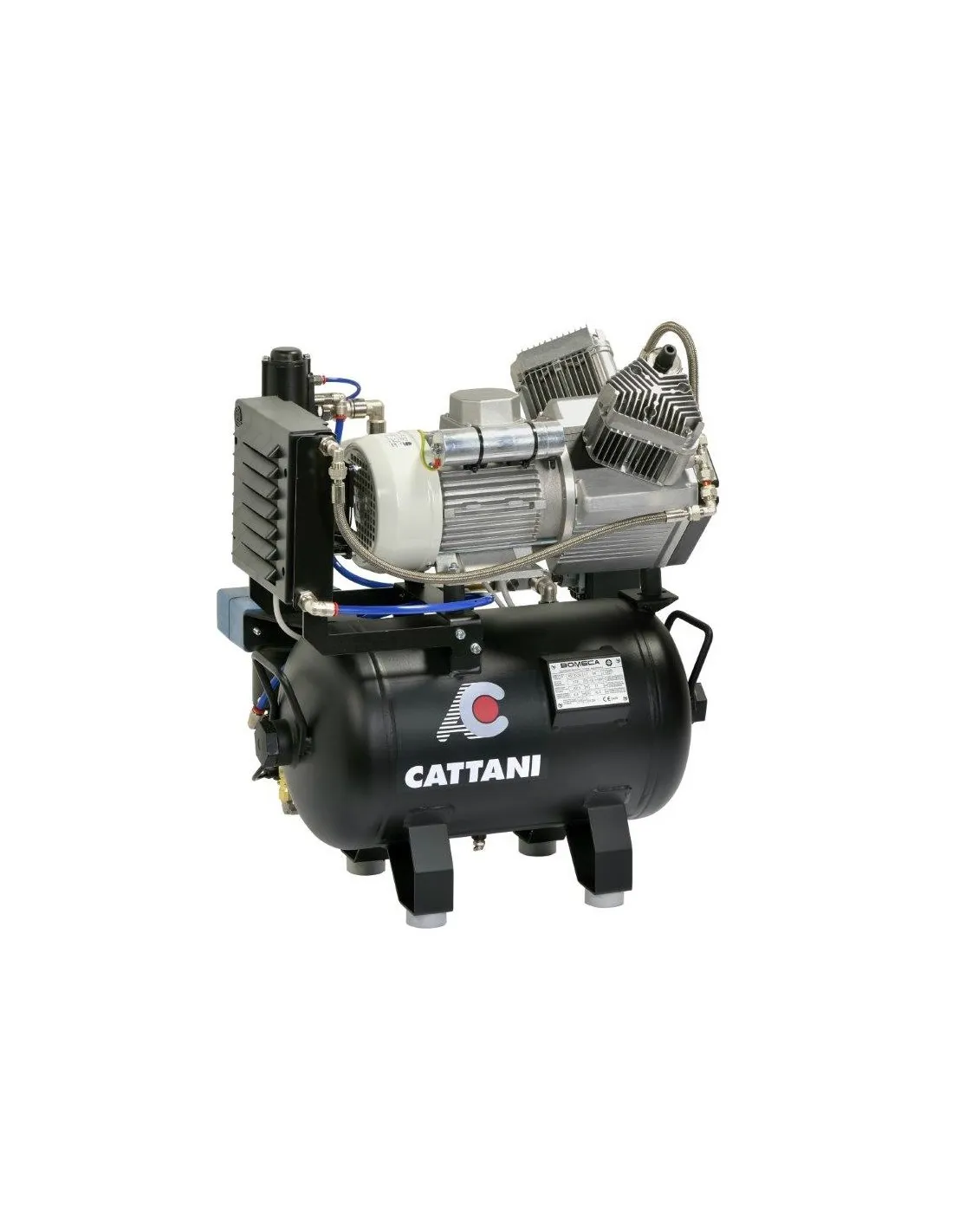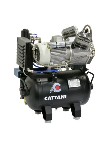 El modelo AC 200 con secador de aire de Cattani está recomendado para un uso con 2 o 3 equipos dentales. Rendimiento para 3 equipos al 100% de simultaneidad.
