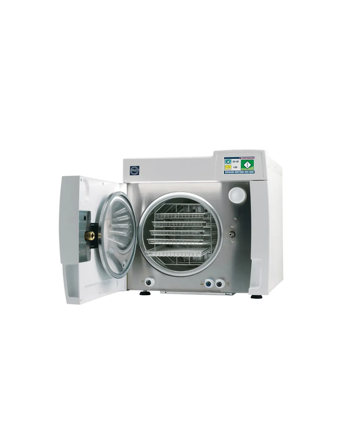 Su nueva pantalla táctil a color presenta una interfaz sencilla e intuitiva, con iconos claramente reconocibles, que representan el estado del autoclave y sus funciones. De esta forma, la selección y ejecución de los ciclos no presenta complicaciones y es más rápida. También se puede programar el arranque de los ciclos de esterilización y de los test.