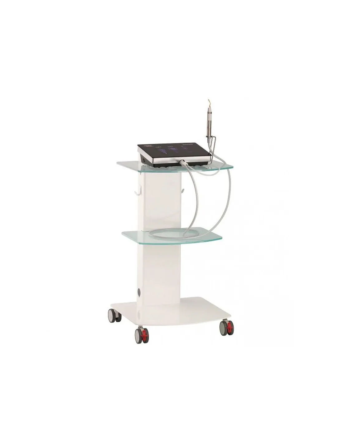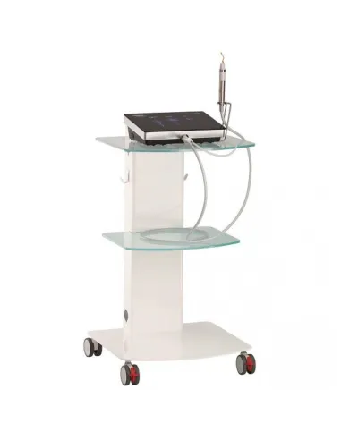 Carrito universal E para clínica de Mectron con 2 estantes de baldas y base.