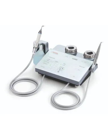 Combi Touch Perio de Mectron es un dispositivo de profilaxis multifuncional, aeropulidor y ultrasonidos, todo en uno. Permite realizar completamente un tratamiento profiláctico removiendo el cálculo supragingival y gingival de manera delicada, manchas y biofilm. Además, de realizar limpiezas de la superficie implantológica.