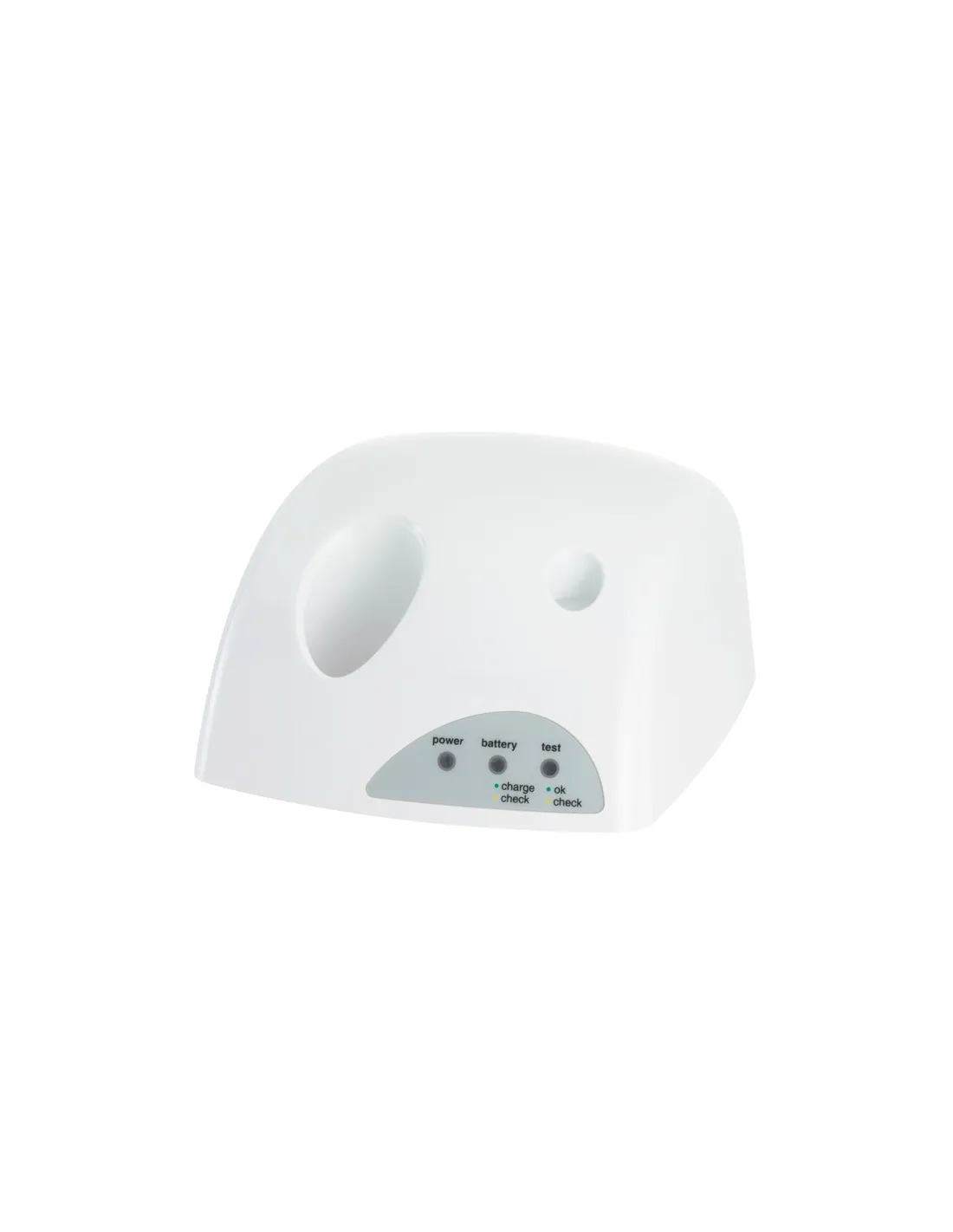 Con radiómetro integrado en la base de carga para controlar la potencia luminosa de salida; el resultado es indicado por un LED.