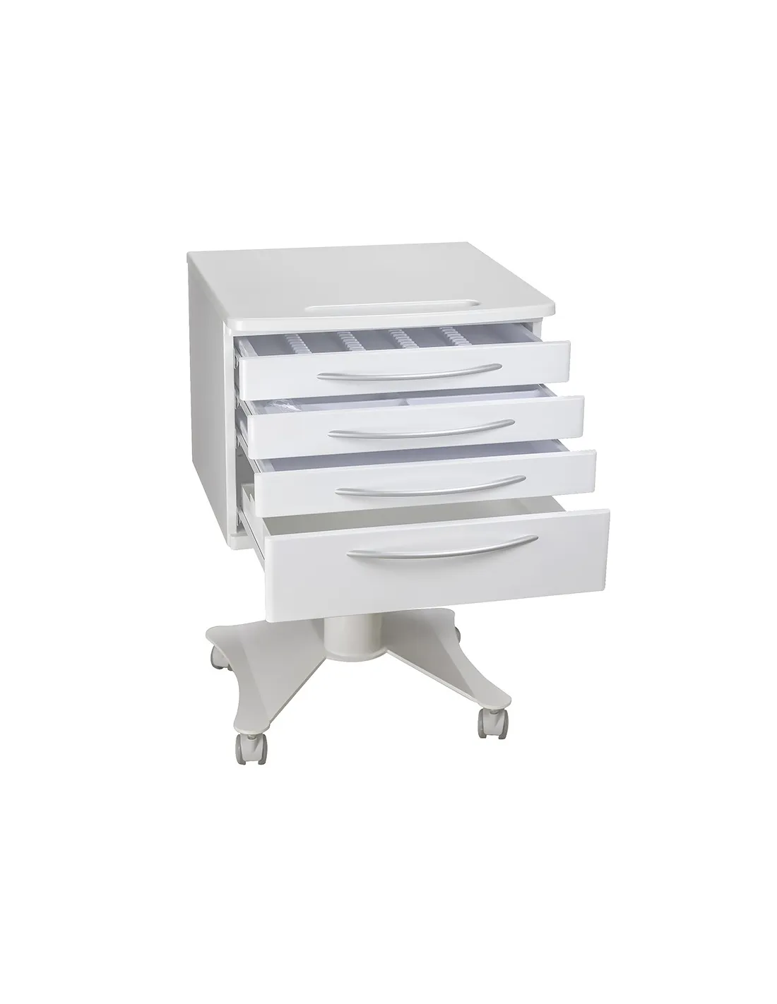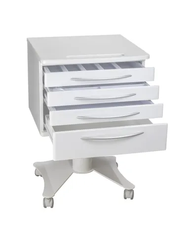 Carrito móvil para clínica CR4Z de Zilfor con 4 cajones y ruedas fabricado en acero lacado en blanco.