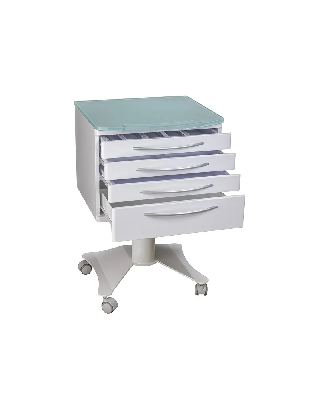 Carrito móvil para clínica CR4Z de Zilfor con 4 cajones y ruedas fabricado en acero lacado en blanco.