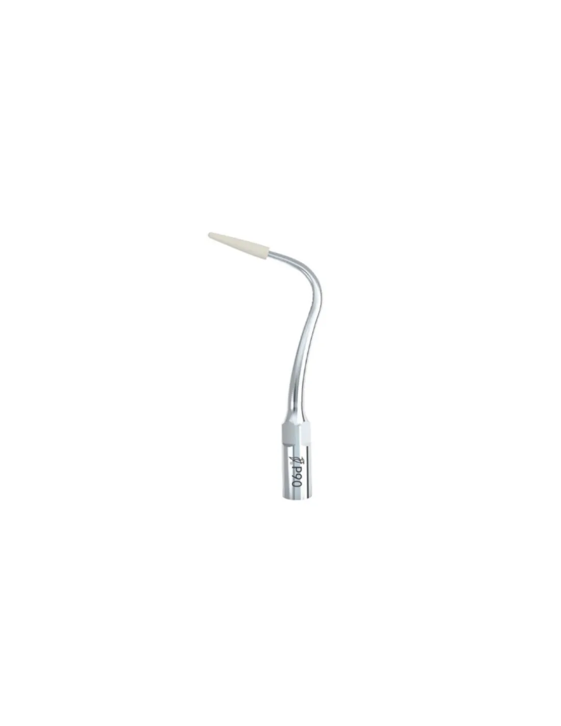 La punta P90 Woodpecker está, especialmente, indicada para realización de la limpieza de la superficie del implante. Gracias al revestimiento de alta tecnología que posee su parte activa no daña la superficie.