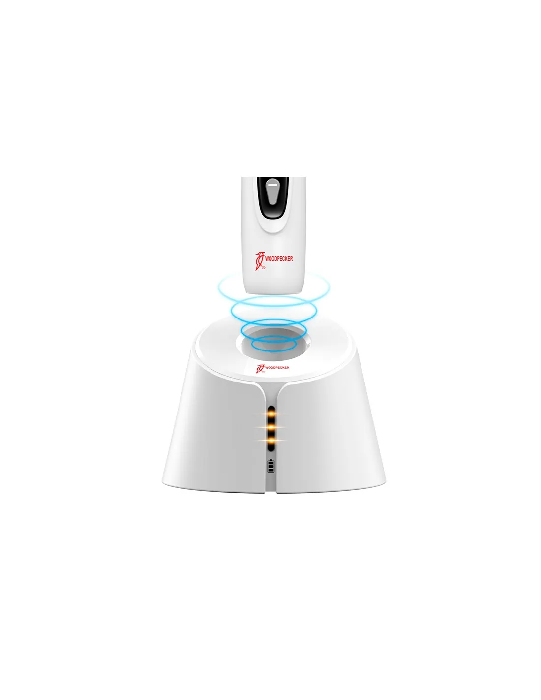 Endo Smart de Woodpecker posee la batería incorporada, la pieza de mano carga al ser colocada en la base de carga.