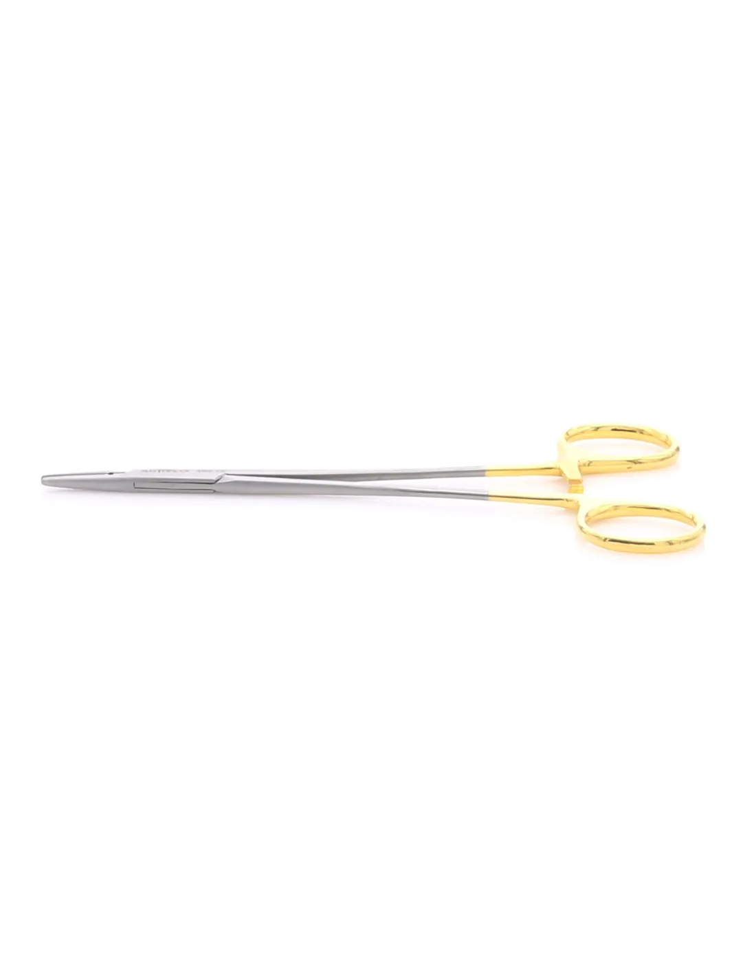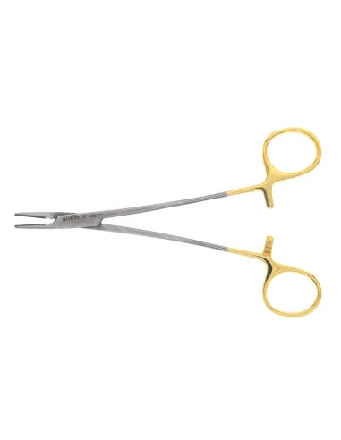 Fabricado en acero inoxidable alemán con parte activa en carburo de tungsteno. Este material que consigue un mejor agarre de la aguja y mayor vida útil del instrumento.