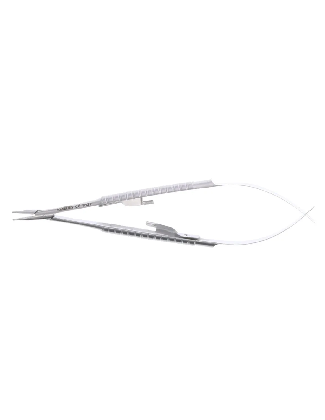 El porta agujas de Masters es un instrumento para microcirugía fino y ligero con agarre estríado para mayor comodidad.
