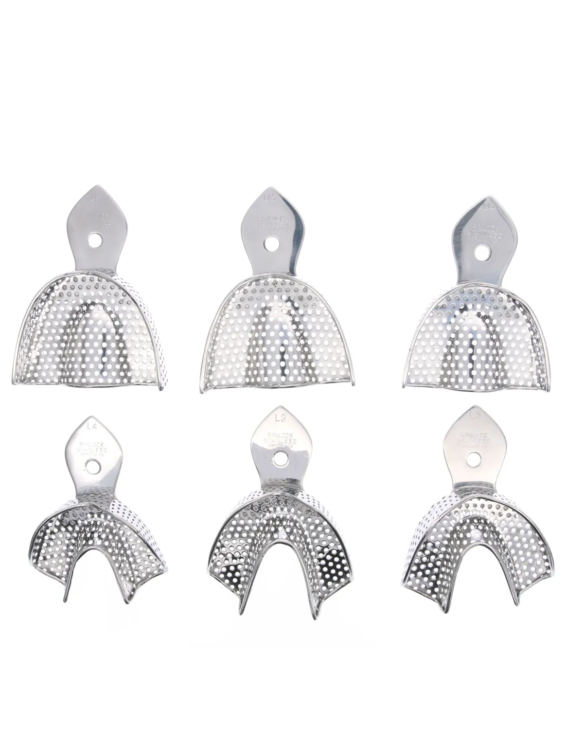 Juego de 6 cubetas de Master Surgical indicadas para la toma de impresiones dentales en odontología en general.