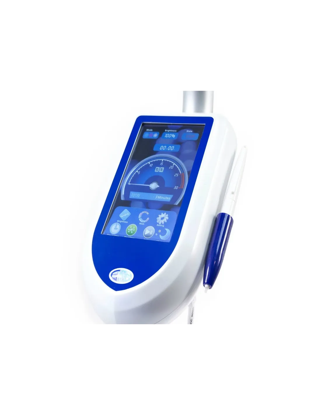 La lámpara de blanqueamiento LED de PrevDent posee una pantalla principal electrónica táctil multifuncional de alta sensibilidad de 5 pulgadas de uso intuitivo. Con selección de salida de cuatro fuentes de luz: azul, rojo, azul + rojo + púrpura, azul + púrpura.