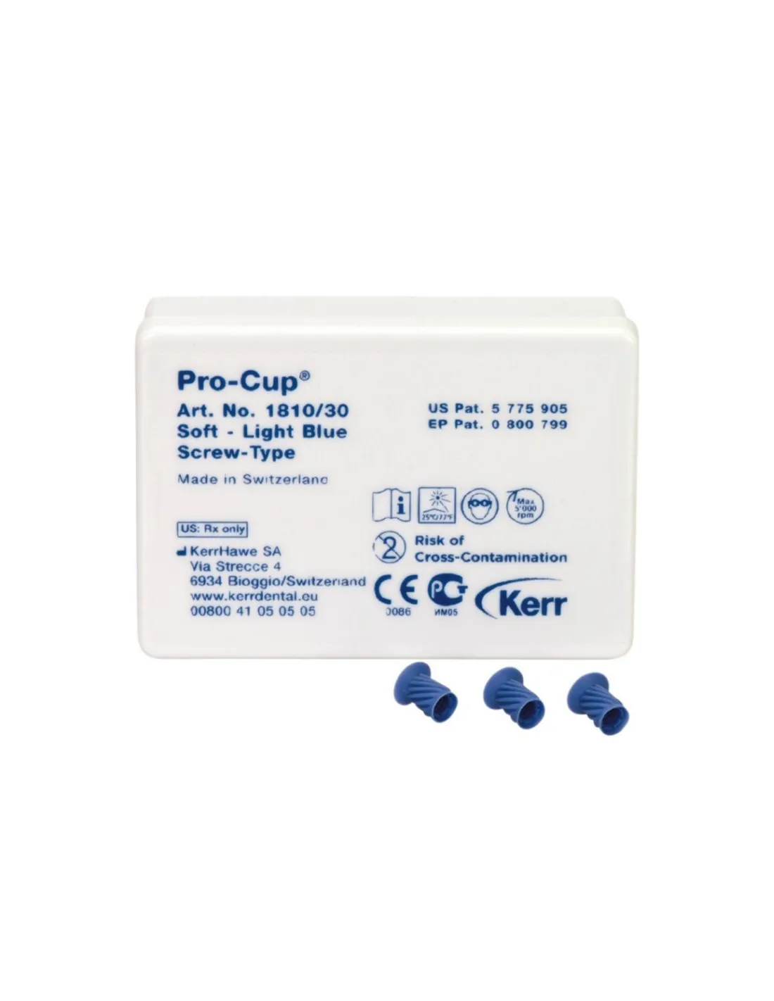 Pro-Cup Soft Light Blue Screw-Type de Hawe-Neos está disponible en cajas de 30 unidades y de 120 unidades, a elegir.