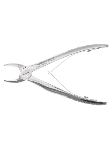 De tamaño de mango y parte activa reducida, el fórceps odontopediátrico figura 137 presenta la misma angulación que los fórceps de adulto. Son rectos, las puntas no se tocan.