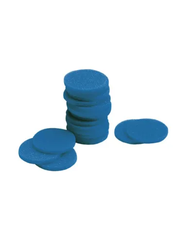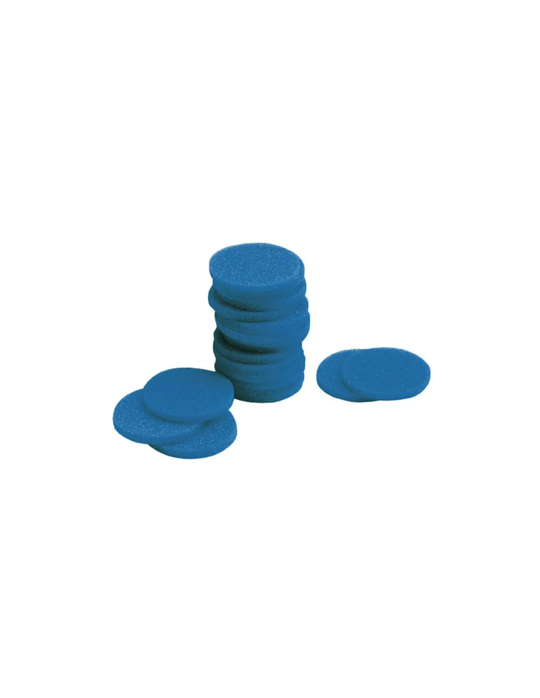 La caja de almohadillas reposición de Interim Stand contiene 55 discos redondos de espuma color azul.