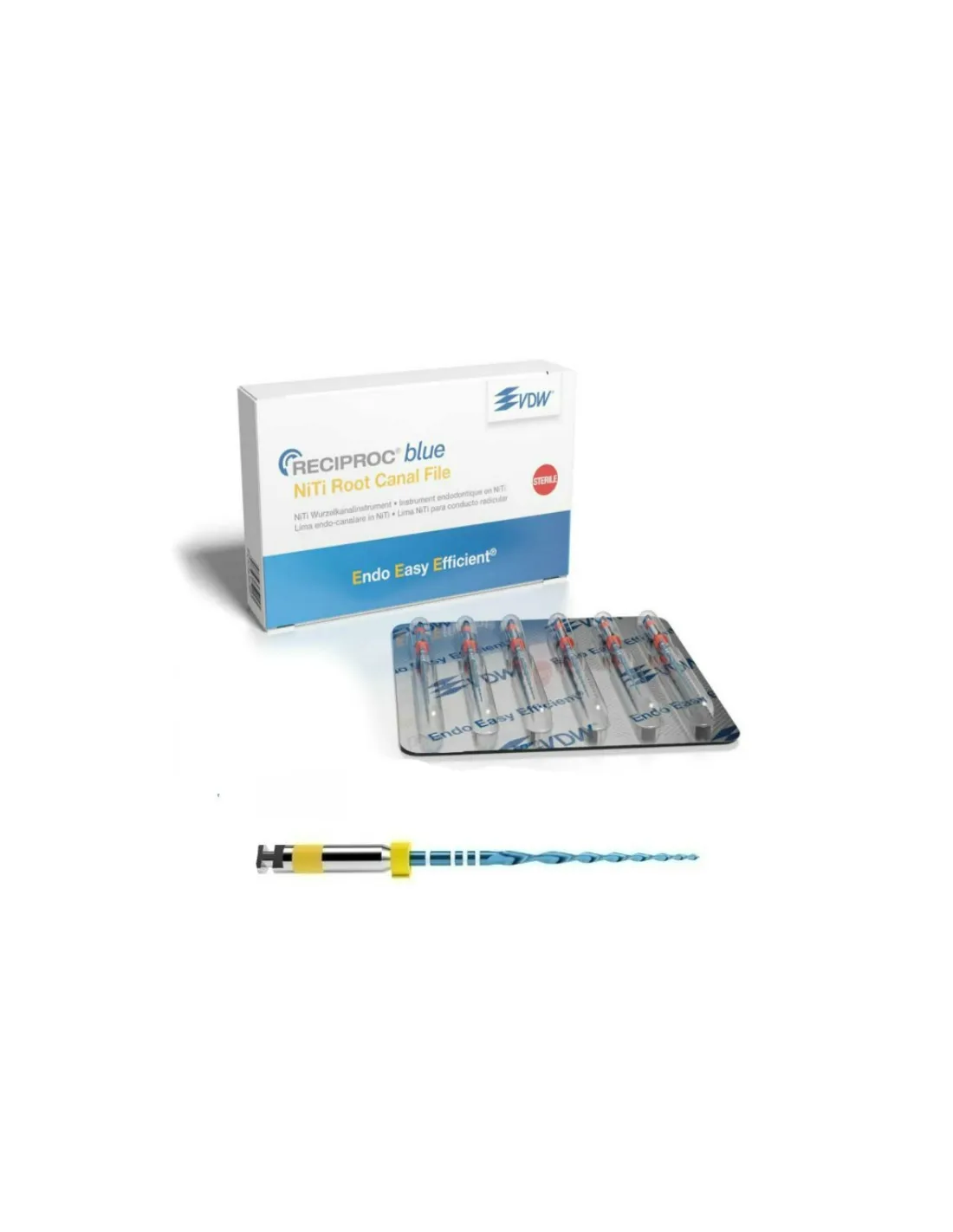 Cada envase de limas Reciproc Blue R50 Reposición de Zipperer contienen 1 blister con 6 unidades.