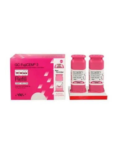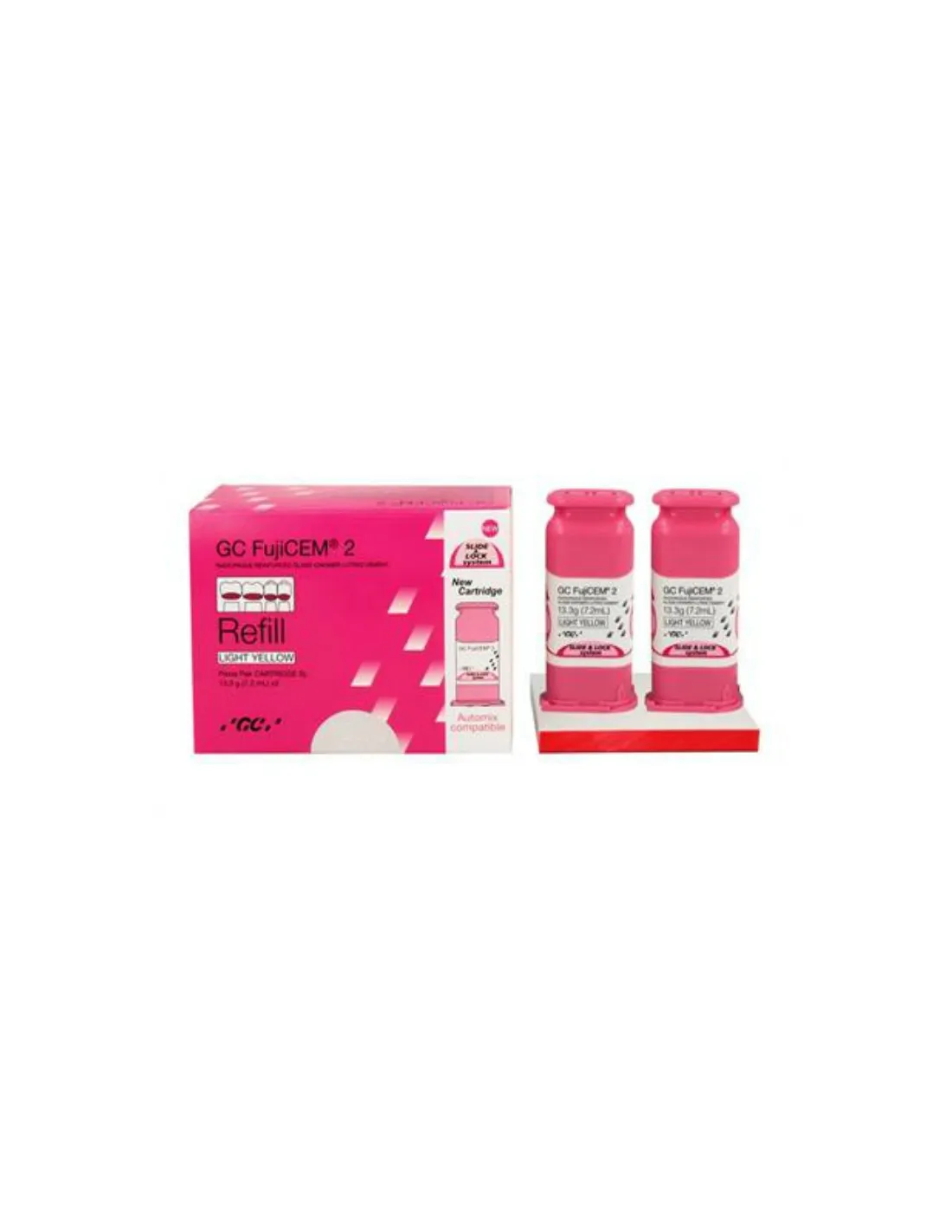 El envase del cemento de fijación FujiCEM 2 Reposición de GC contiene 2 cartuchos paste pak SL 13,3gr.