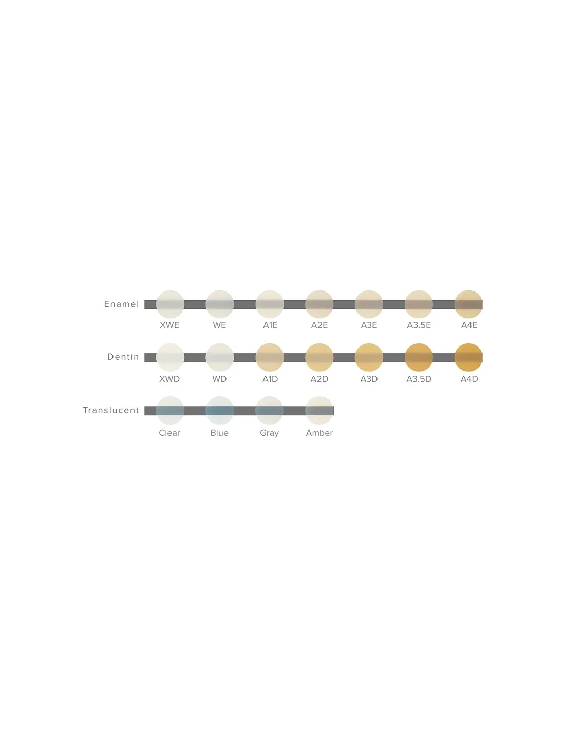 Clearfil Majesty ES-2 Premium hará que sus restauraciones sean un éxito predecible, gracias a las combinaciones de colores fijos de dentina y esmalte. Clearfil Majesty Premium cubre al menos 3 tonos VITA con una combinación única de sus colores Premium Enamel y Dentina.