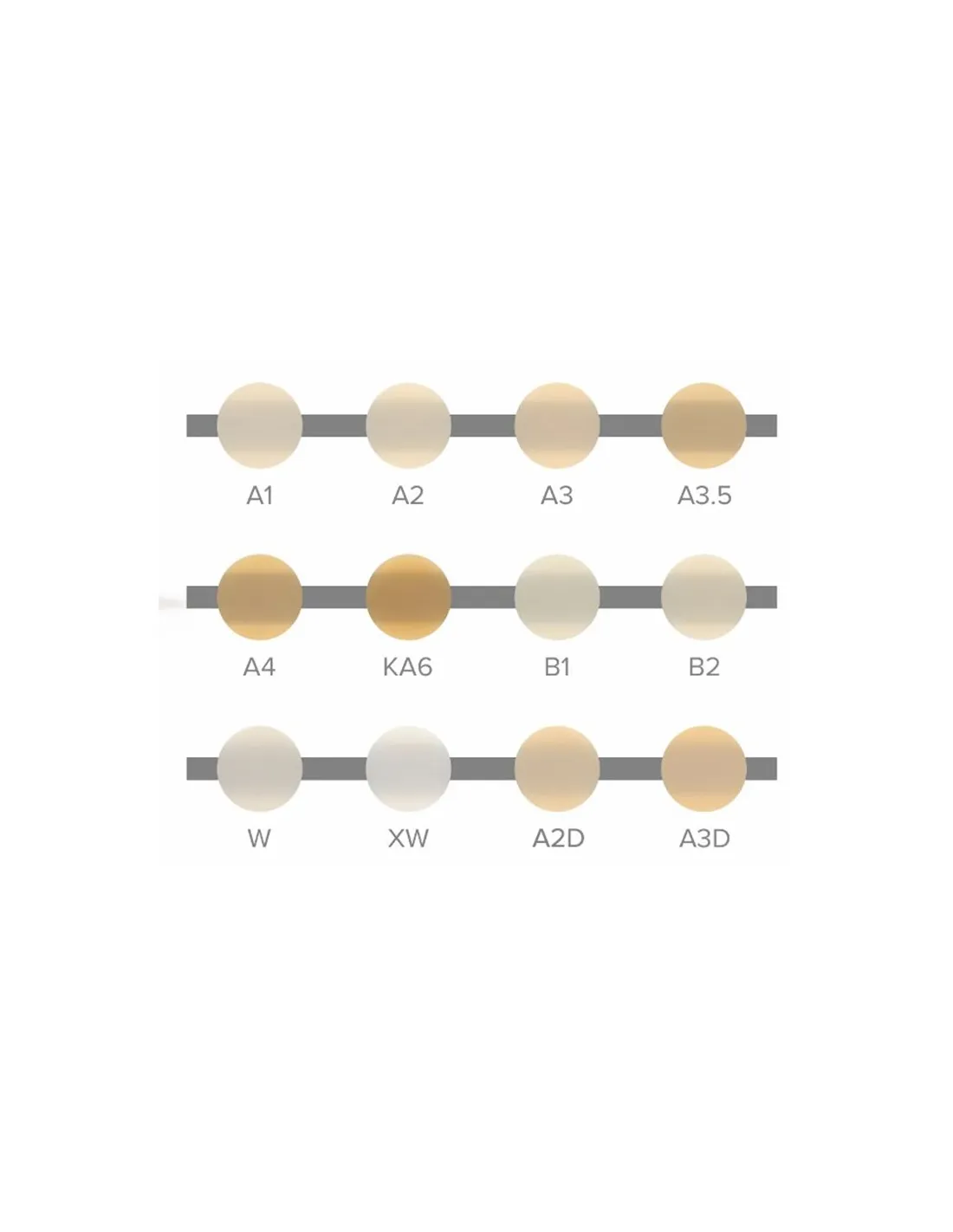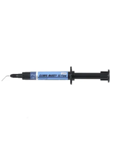 Clearfil Majesty ES Flow Low tiene brillo de esmalte y se adapta perfectamente al color. Amplia gama de colores, incluidos los de dentina. Alta resistencia mecánica. No se adhiere a la punta de la cánula ni a los instrumentos, sólo al área de aplicación.