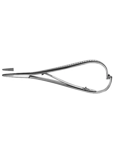 Porta agujas Mathieu con cierre de tipo cremallera por lo que mantiene una gran presión y además tiene pequeñas estrías en su punta para más sujeción.