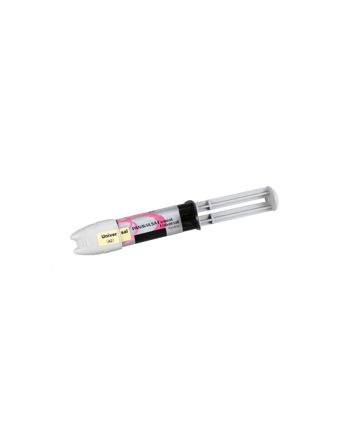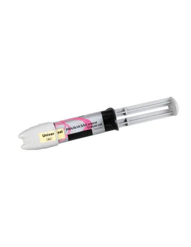 Panavia SA Cement Universal de Kuraray se presenta en jeringas Handmix. Está disponible en 3 colores: blanco, A2 y trans.