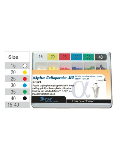 Las guta-percha Apha poseen conicidad .04 y una longitud de 28mm.