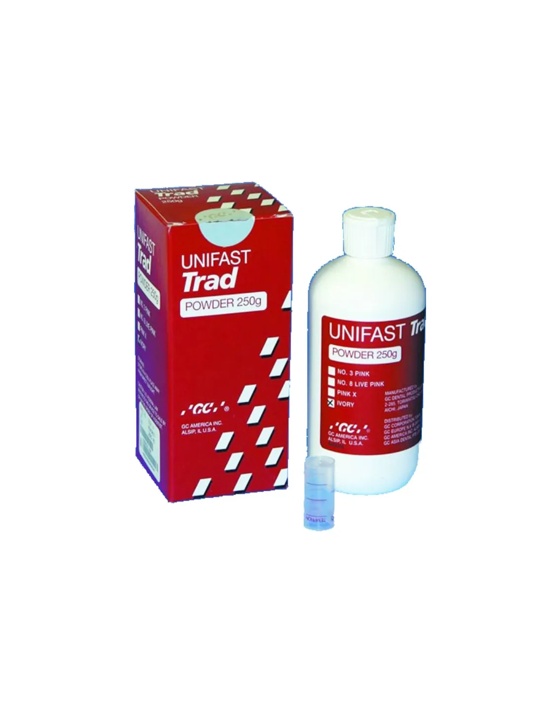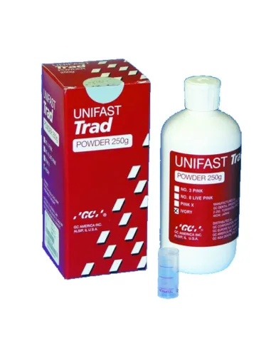 Unifast Trad de GC es un acrílico (polvo/líquido) para restauraciones provisionales basado en la resina de metacrilato de metilo. Cubre las necesidades de tratamientos rápidos, de eliminación sin problemas durante la fase de fraguado.