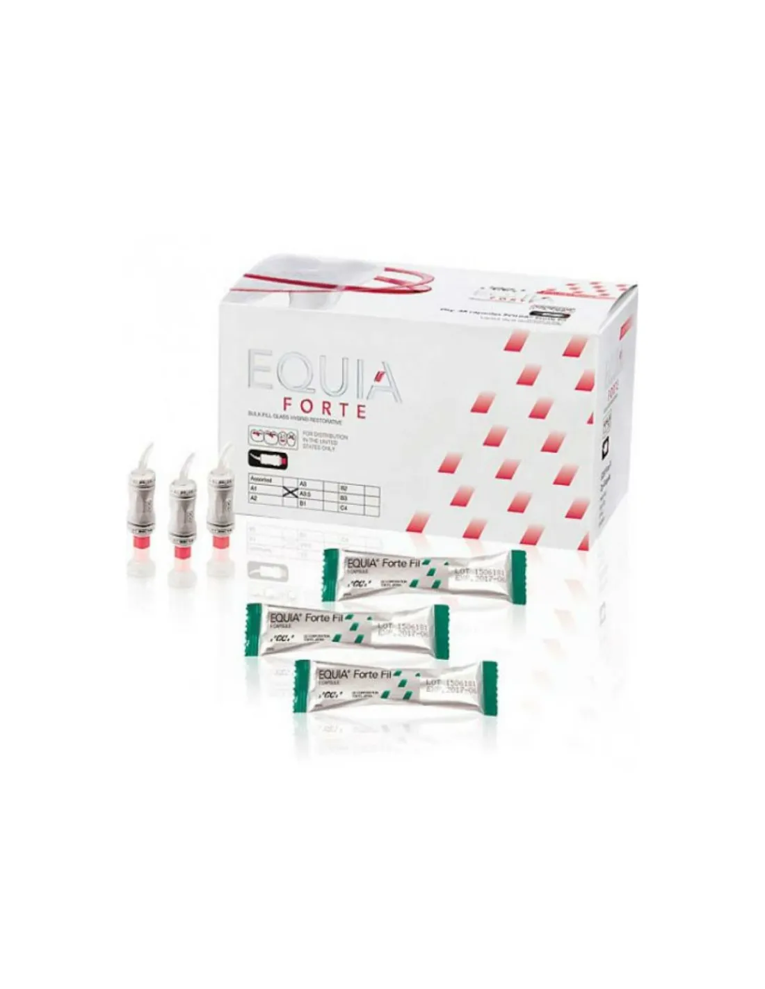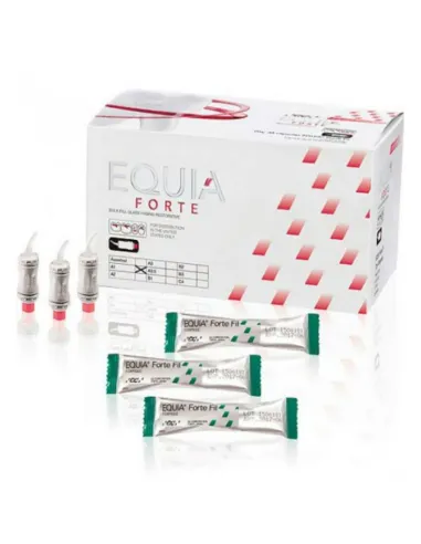 La caja de Equia Forte Intro Pack de GC contienen 20 unidades + 20 unidosis de Equia Forte Coat, a elegir tono entre los disponibles.