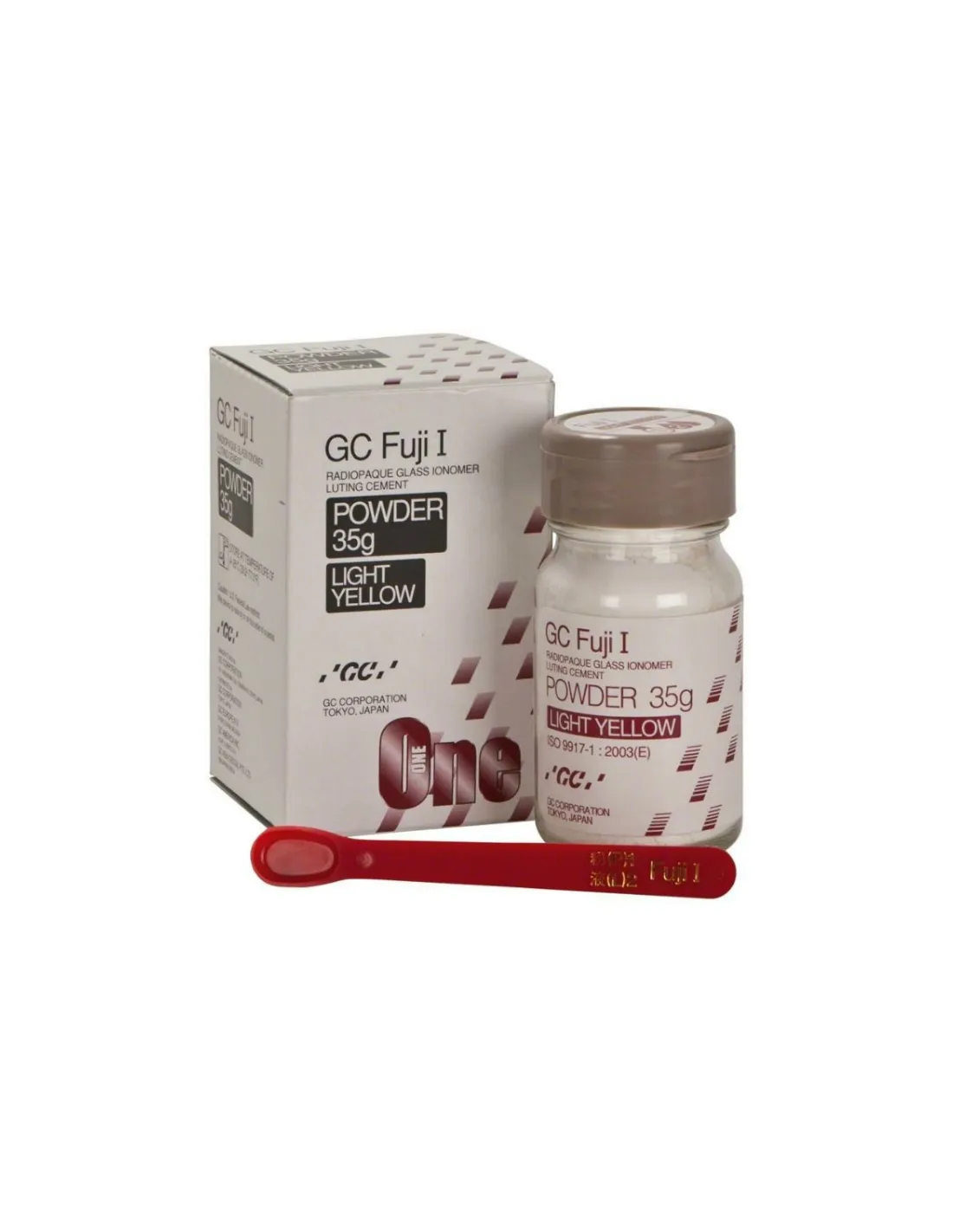 Fuji I de GC es un cemento compuesto por polvo y líquido para mezclar, sin resinas y biocompatible, de ionómero de vidrio para la cementación final protésica.