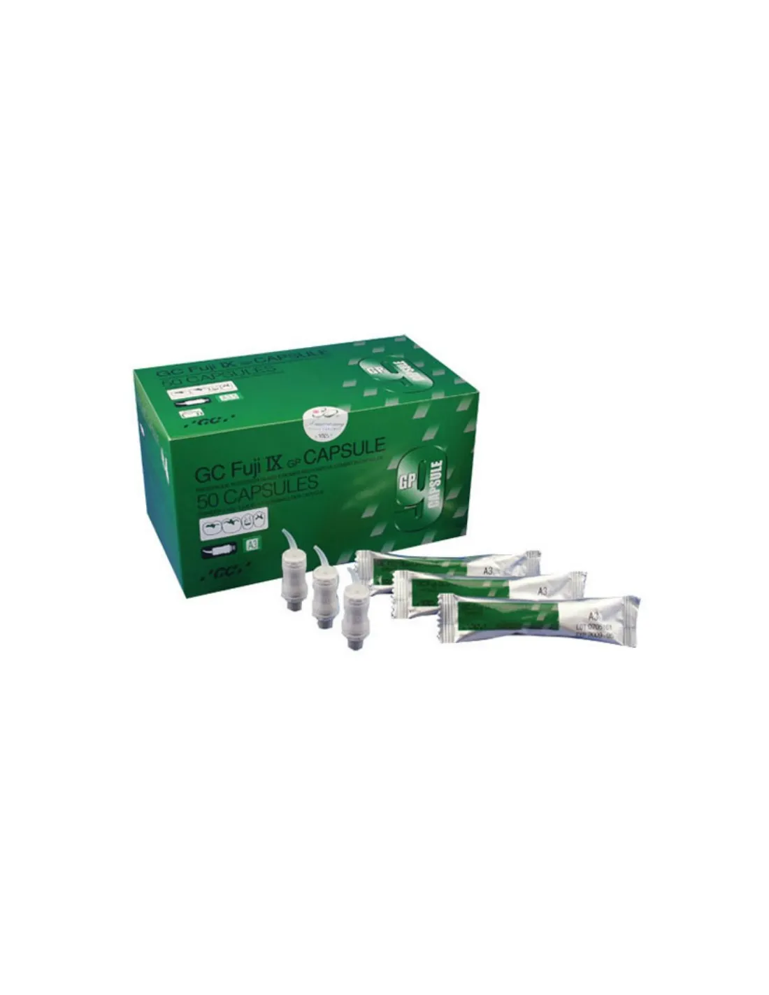 El envase de Fuji IX GP Cápsulas de GC contiene 50 unidades, a elegir tono entre los disponibles.