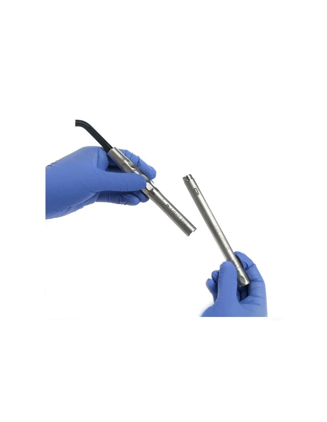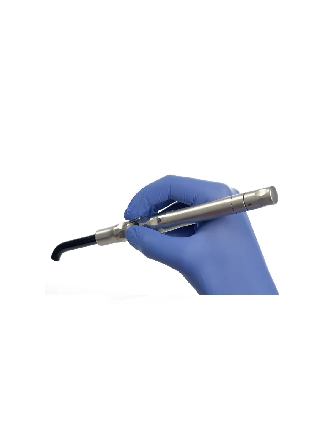 Su pieza de mano es muy pequeña y ligera, de uso confortable para el profesional. Además, se puede esterilizar en autoclave, una vez retirada la batería y los componentes electrónicos, para una mejor higiene y evitar el riesgo de contaminación cruzada.